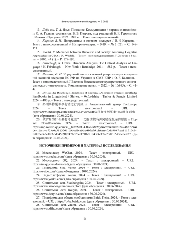 11. Кушнерук, С. Л. Развитие лингвистики информационно-психологической войны: методологическая неоднородность и первые результаты / С. Л. Кушнерук, А. П. Чудинов. - Текст: непосредственный // Экология языка и коммуникативная практика. - 2019. - Т. 4. - № 1. - С. 105-118. EDN: MYNIMV