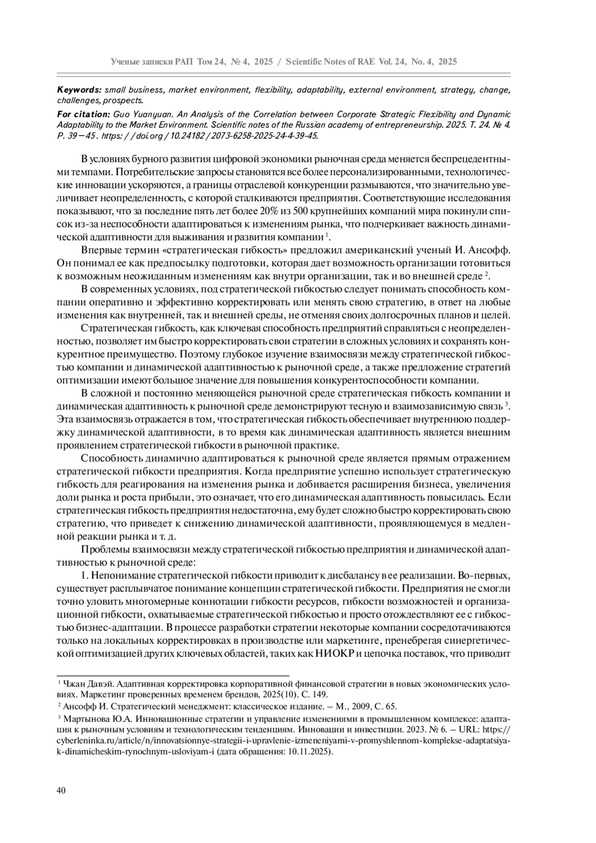 В условиях стремительного развития современного бизнеса организационная гибкость стала краеугольным камнем успеха. Компании сталкиваются с целым рядом проблем: от технологических достижений до изменений в потребительских предпочтениях и глобальных экономических колебаний. В этой динамичной среде способность быстро и эффективно адаптироваться имеет решающее значение для сохранения конкурентоспособности и устойчивости. Выявлена тесная взаимосвязь между стратегической гибкостью и способностью к динамической адаптации к рыночной среде. Однако существующее соотношение между ними страдает от ряда проблем, включая неправильное понимание стратегической гибкости, приводящее к дисбалансу в исполнении, жесткие организационные структуры, препятствующие стратегической гибкости, и недостаточные возможности стратегического прогнозирования со стороны руководства.