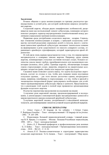 4. Аюшев, Б. Б. Лексико-семантическая и структурная характеристика солдатских жаргонизмов / Б. Б. Аюшев. - Текст: электронный // Мир науки. Социология, филология, культурология. - 2019. - Т. 10. - № 4. - URL: https://sfk-mn.ru/PDF/32FLSK419.pdf (дата обращения: 27.04.2025).
