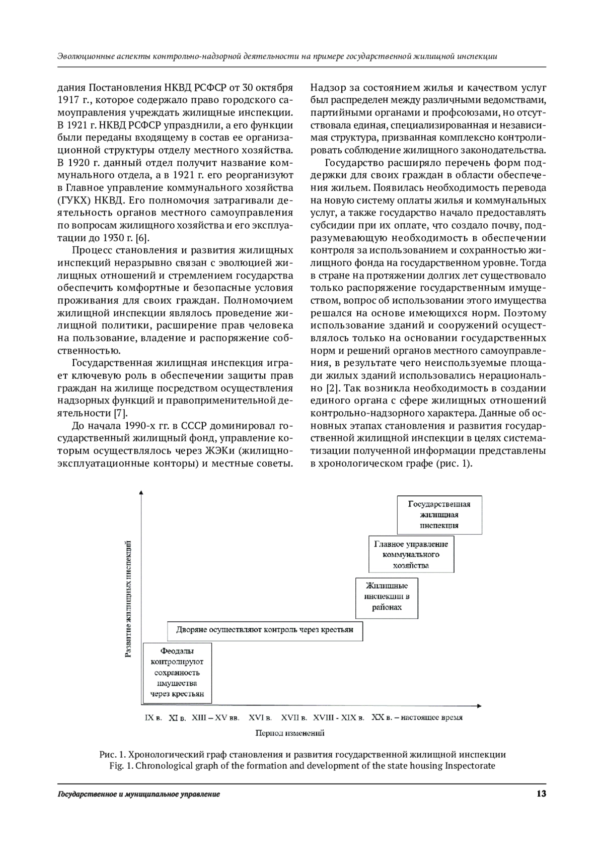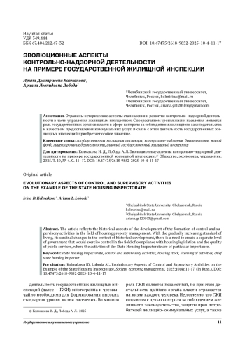 Отражены исторические аспекты становления и развития контрольно-надзорной деятельности в части управления жилищным имуществом. С возрастанием уровня жизни населения меняется роль государственных органов власти в сфере контроля за соблюдением жилищного законодательства и качеством предоставления коммунальных услуг. В связи с этим деятельность государственных жилищных инспекций приобретает особое значение.
