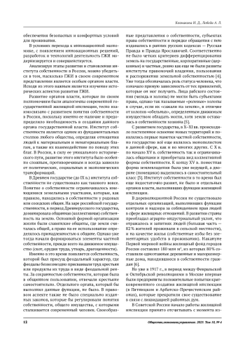 Анализируя этапы развития и становления института собственности в России, можно убедиться в том, насколько ГЖИ в своем современном представлении является особым органом власти. Исходя из этого важным является изучение исторических аспектов развития ГЖИ. Развитие органов власти, которые по своим полномочиям были аналогичны современной государственной жилищной инспекции, тесно взаимосвязано с развитием понятия собственности в России, поскольку именно ее наличие и предопределило необходимость в создании данного органа государственной власти. Институт собственности является одним из фундаментальных столпов любого общества, определяя отношения людей к материальным и нематериальным благам, а также их взаимодействие по поводу этих благ. В России, в силу ее уникального исторического пути, развитие этого института было особенно сложным, противоречивым и всегда зависело от политических, социальных и экономических трансформаций.