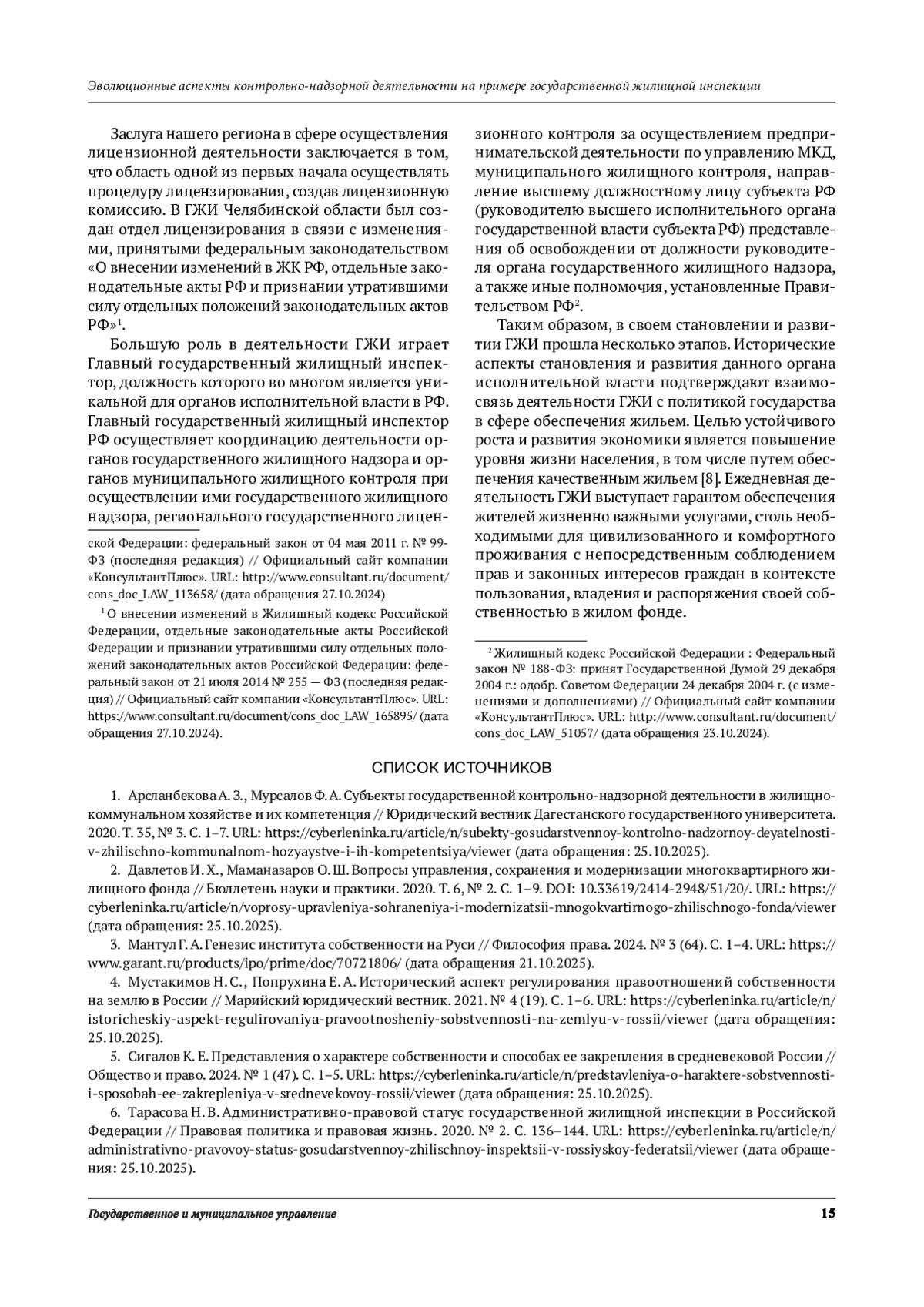 6. Тарасова Н. В. Административно-правовой статус государственной жилищной инспекции в Российской Федерации // Правовая политика и правовая жизнь. 2020. № 2. С. 136-144. URL: https://cyberleninka.ru/article/n/administrativno-p ravovoy-status- gosudarstvennoy-zhilischnoy- inspektsii-v-rossiyskoy- federatsii/viewer (дата обращения: 25.10.2025).