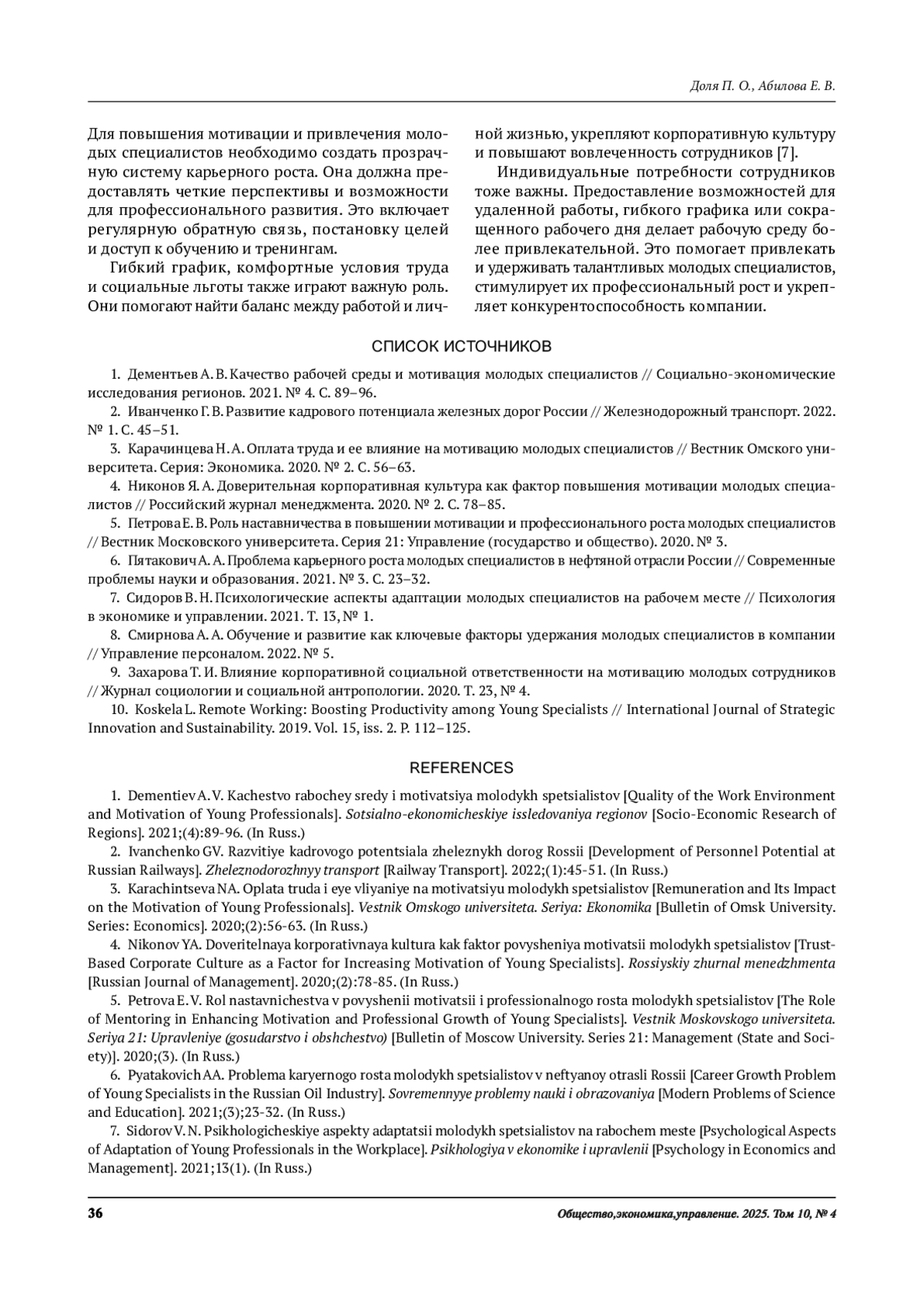 7. Сидоров В. Н. Психологические аспекты адаптации молодых специалистов на рабочем месте // Психология в экономике и управлении. 2021. Т. 13, № 1.