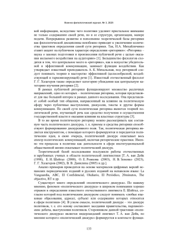 3. Данилина, В. В. Политическая риторика как научное направление / В. В. Данилина. - Текст: электронный // Вестник Московского университета. Серия 21: Управление (государство и общество). - 2005. - № 2. - URL: https://cyberleninka.ru/article/n/politicheskaya-ritorika-kak-nauchnoe-napravlenie/viewer (дата обращения: 04.12.2024). EDN: KGCDET