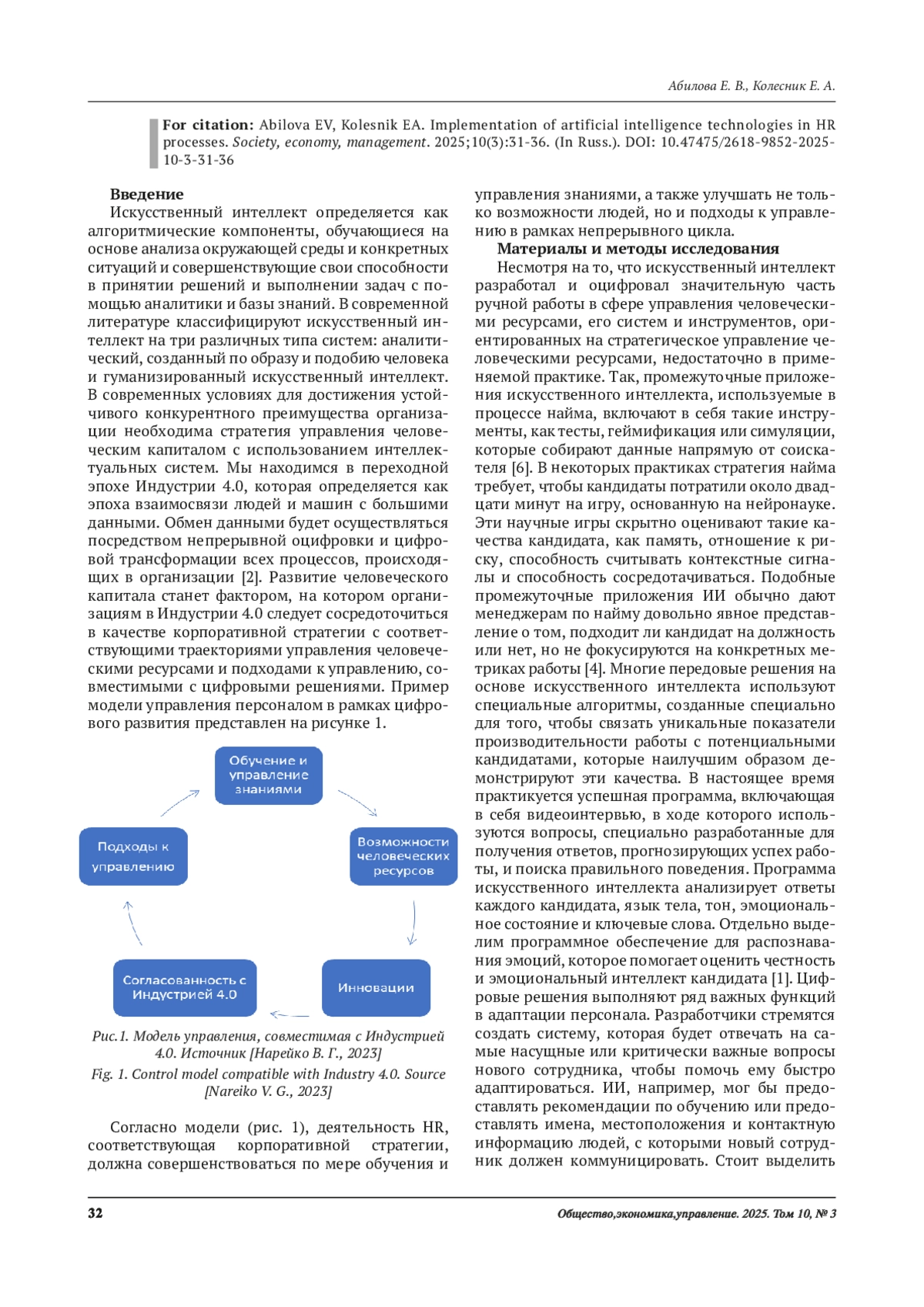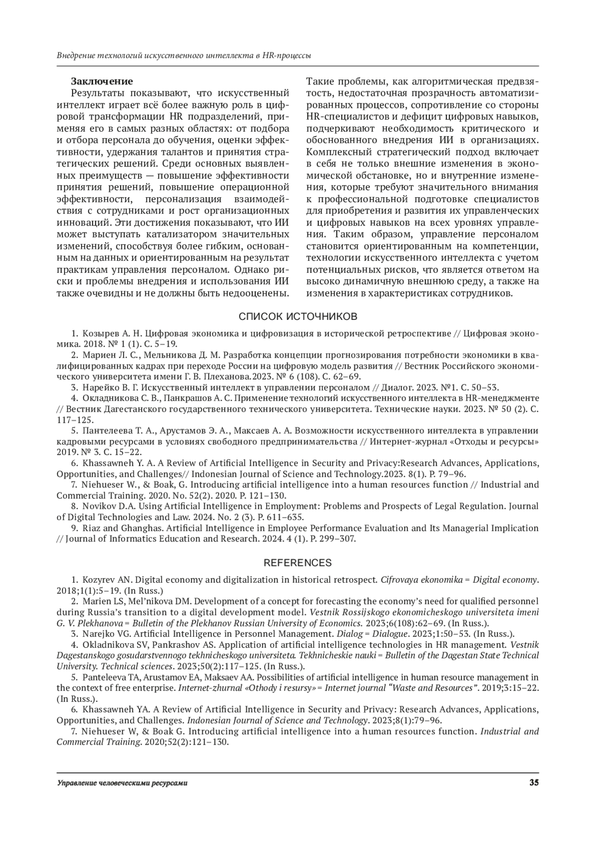 4. Окладникова С. В., Панкрашов А. С. Применение технологий искусственного интеллекта в HR-менеджменте // Вестник Дагестанского государственного технического университета. Технические науки. 2023. № 50 (2). С. 117-125. EDN: IIYDNS