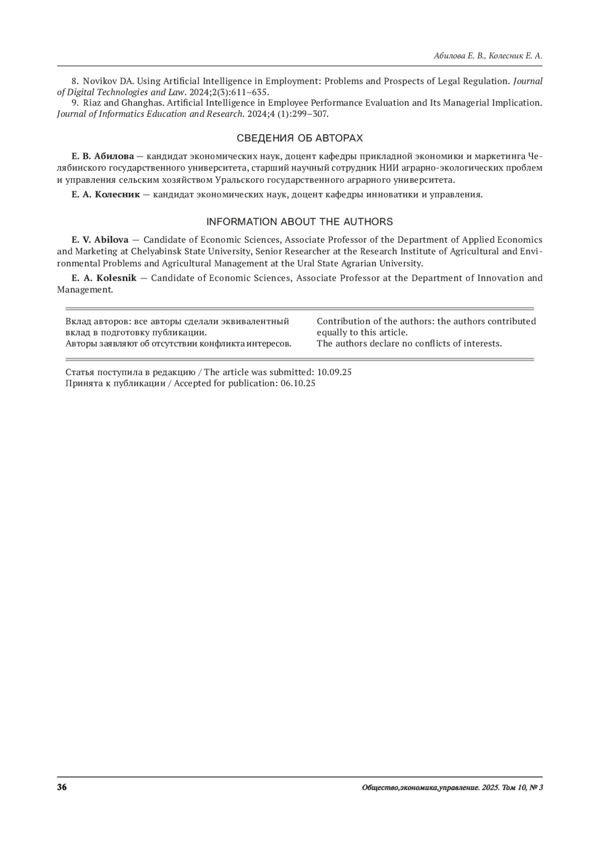 3. Нарейко В. Г. Искусственный интеллект в управлении персоналом // Диалог. 2023. №1. С. 50-53.