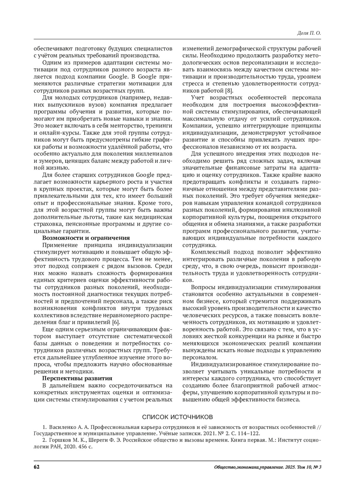 2. Горшков М. К., Шереги Ф. Э. Российское общество и вызовы времени. Книга первая. М.: Институт социологии РАН, 2020. 456 с. Индивидуализация стимулирования: как учитывать возрастные особенности персонала.