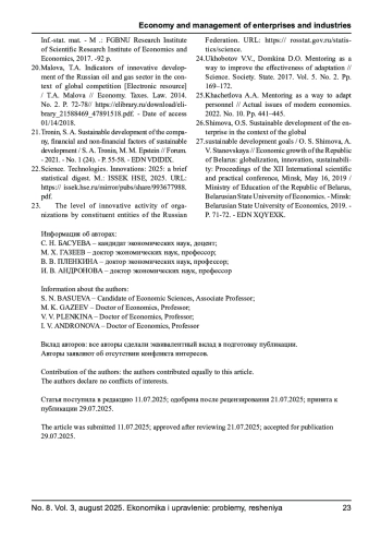 12. Гайфуллина М., Маков В. Оценка эффективности наставничества в управлении персоналом нефтяной компании // Экономика и управление: научно-практический журнал, № 2 (170), 2023.