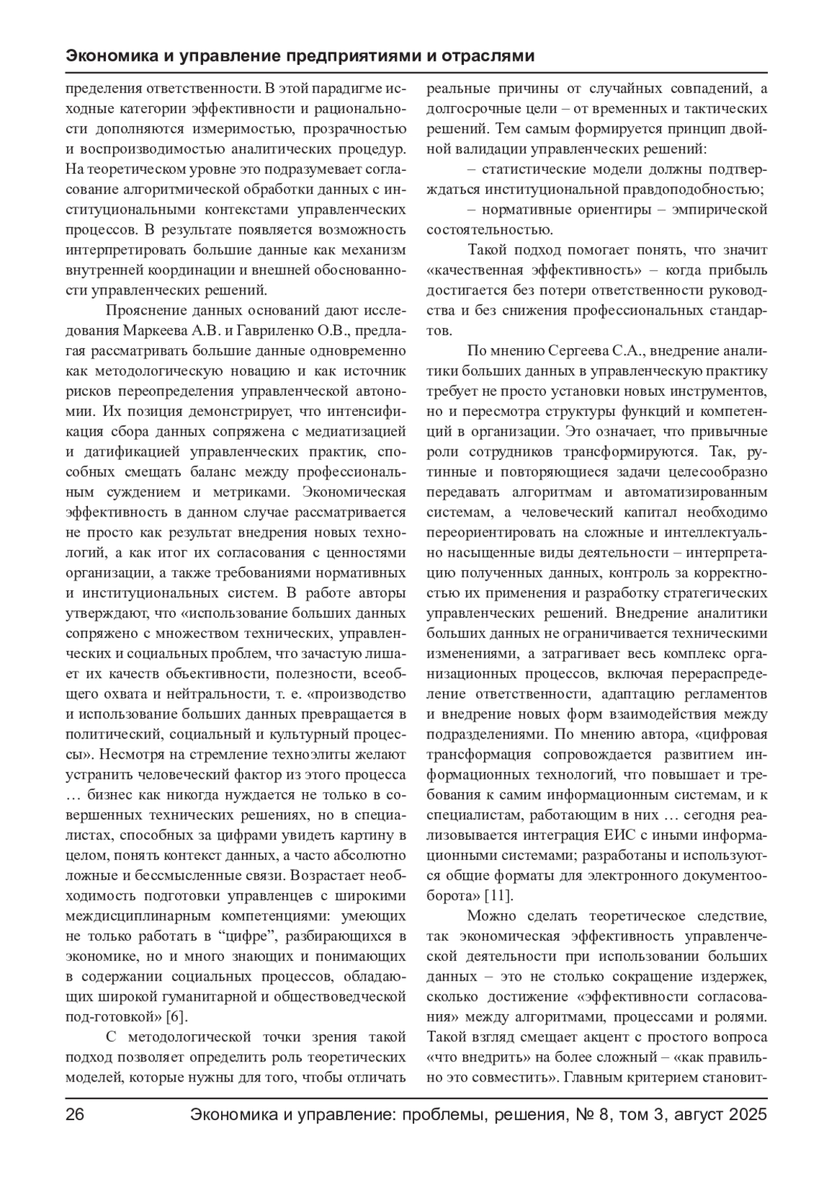 6. Маркеева, А. В. Большие данные как исследовательская технология: возможности и ограничения применения в современной управленческой практике / А. В. Маркеева, О. В. Гавриленко // Общество: социология, психология, педагогика. - 2021. - № 12(92). - С. 94-103. EDN: OXSGTG