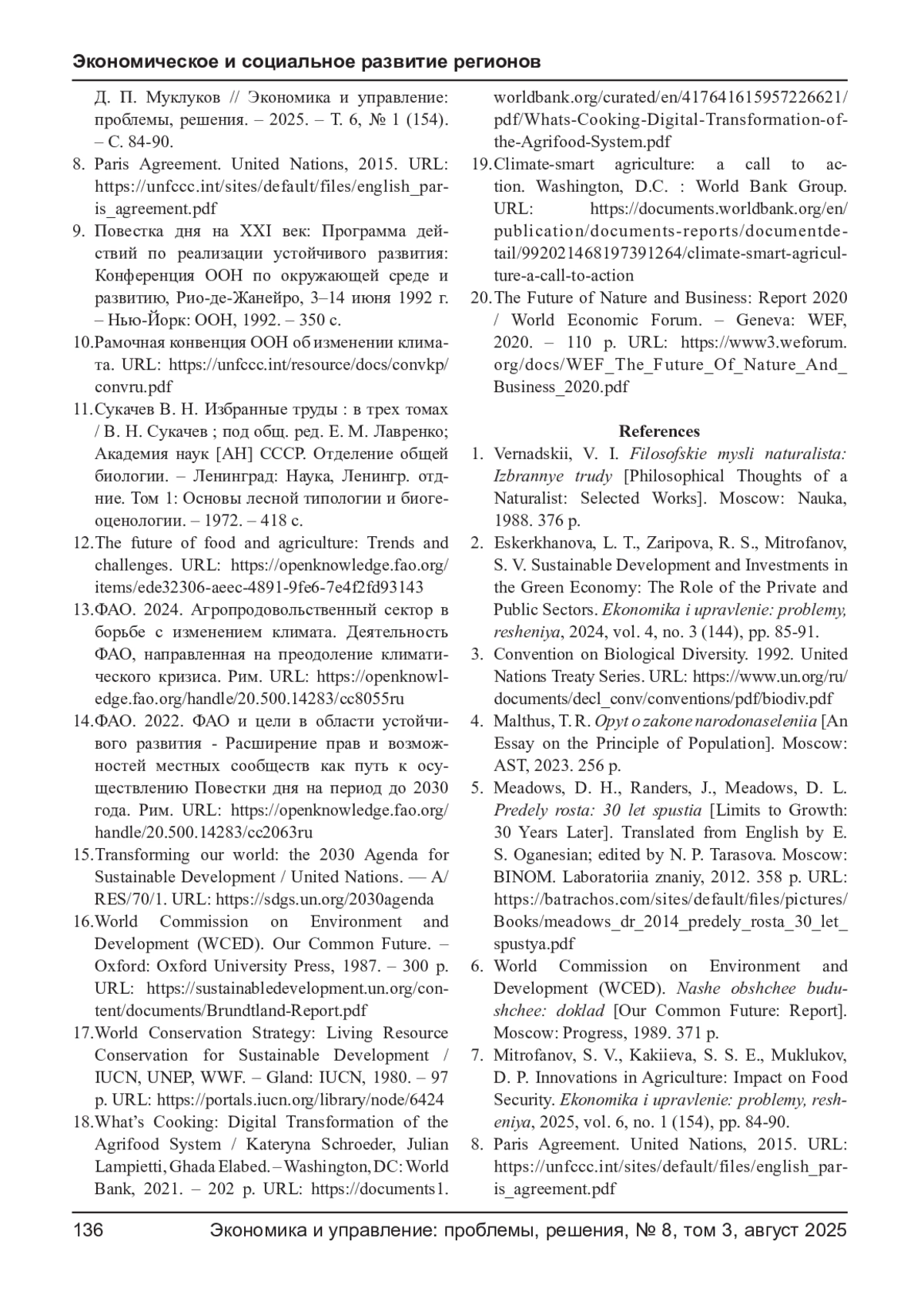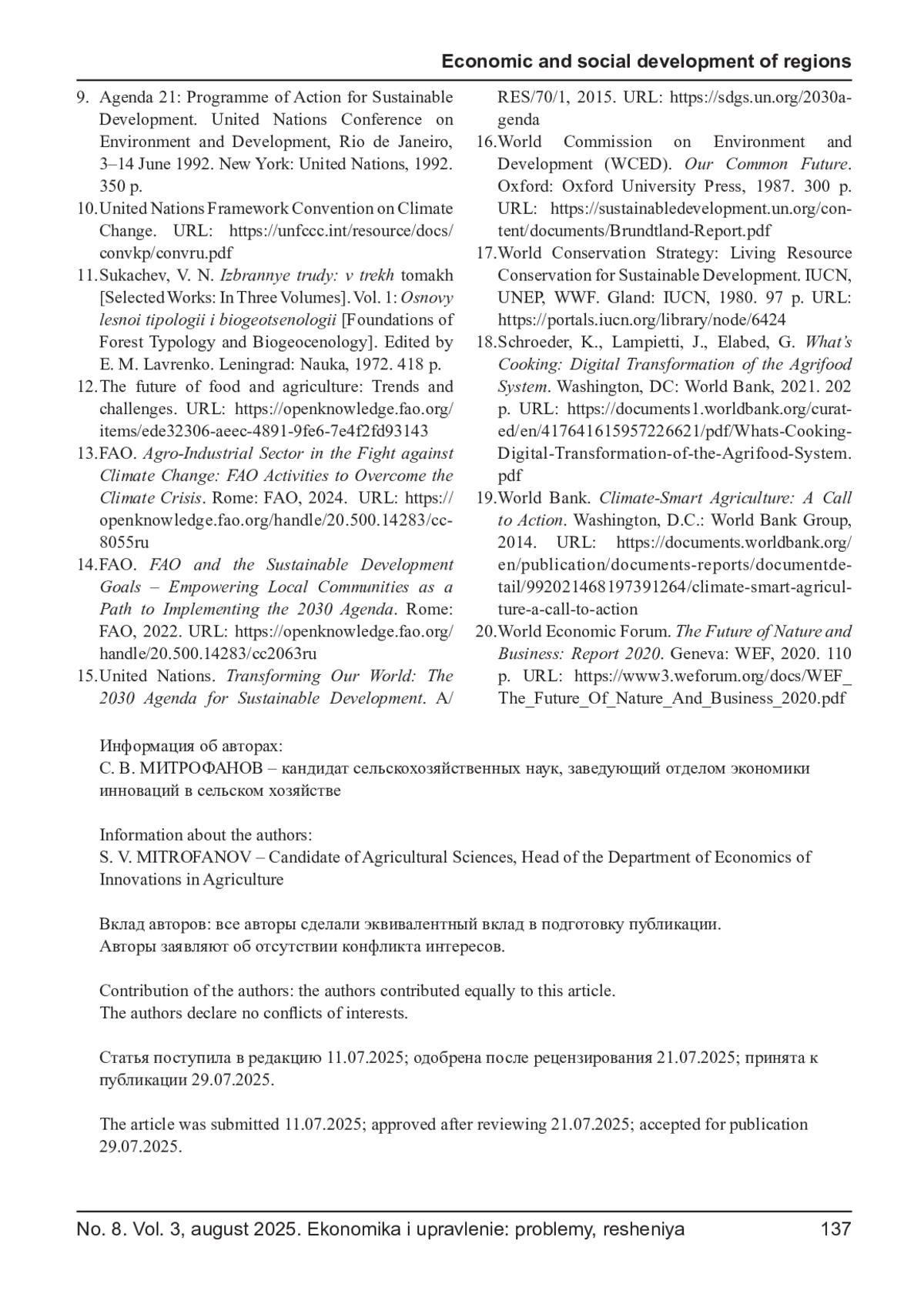 7. Митрофанов С. В. Инновации в сельском хозяйстве: влияние на продовольственную безопасность / С. В. Митрофанов, С. С. Э. Какиева, Д. П. Муклуков // Экономика и управление: проблемы, решения. - 2025. - Т. 6, № 1 (154). - С. 84-90. EDN: EBIAOL