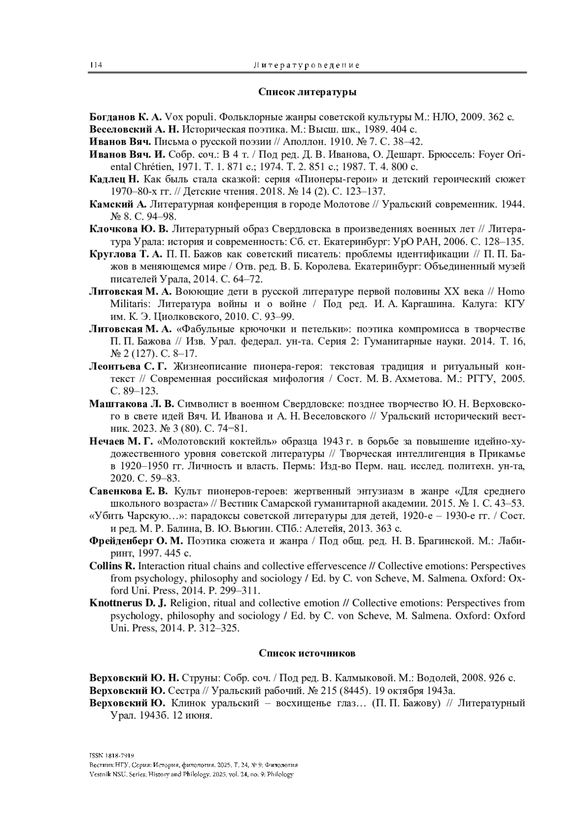 10. Литовская М. А. «Фабульные крючочки и петельки»: поэтика компромисса в творчестве П. П. Бажова // Изв. Урал. федерал. ун-та. Серия 2: Гуманитарные науки. 2014. Т. 16, № 2 (127). С. 8-17.