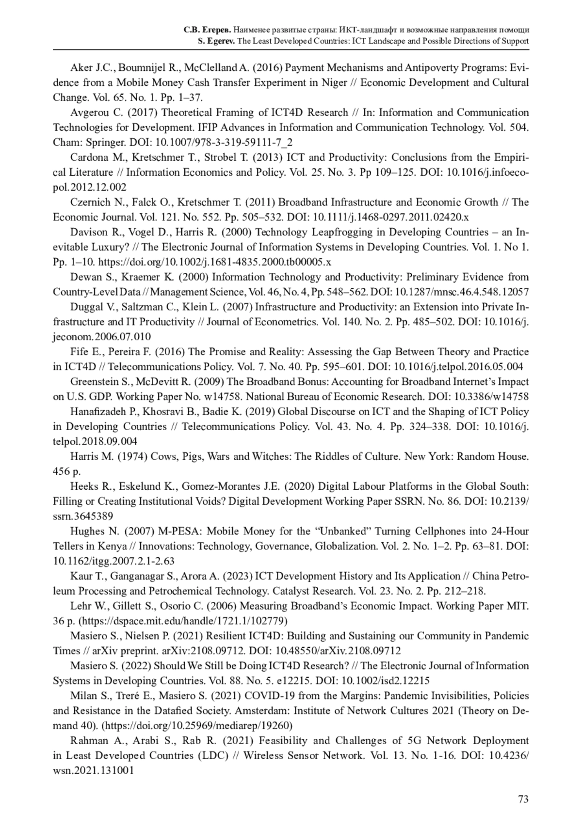 5. Avgerou C. (2017) Theoretical Framing of ICT4D Research // In: Information and Communication Technologies for Development. IFIP Advances in Information and Communication Technology. Vol. 504. Cham: Springer. DOI: 10.1007/978-3-319-59111-7_2
