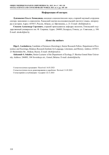 Очевидно, что в условиях двуязычия языковая ситуация может развиваться по-разному. С одной стороны, существует вероятность вытеснения одного из языков, с другой стороны, возможно сосуществование двух языков, однако степень их распространенности и сферы использования могут быть разными. Это особенно заметно, когда речь идет об очень непохожих этнических сообществах, таких как белорусы и хакасы. Сопоставлению языковой ситуации в Беларуси и Республике Хакасия посвящена настоящая статья
