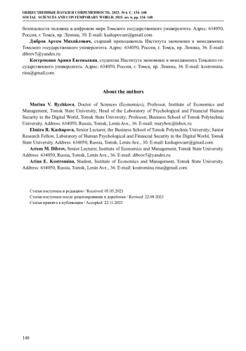 2. Сушко Е.Ю. (2014) Рациональность финансового поведения населения как фактор процветания финансового сектора // Мир экономики и управления. Т. 14. № 4. С. 99-110. EDN: TKKTBZ