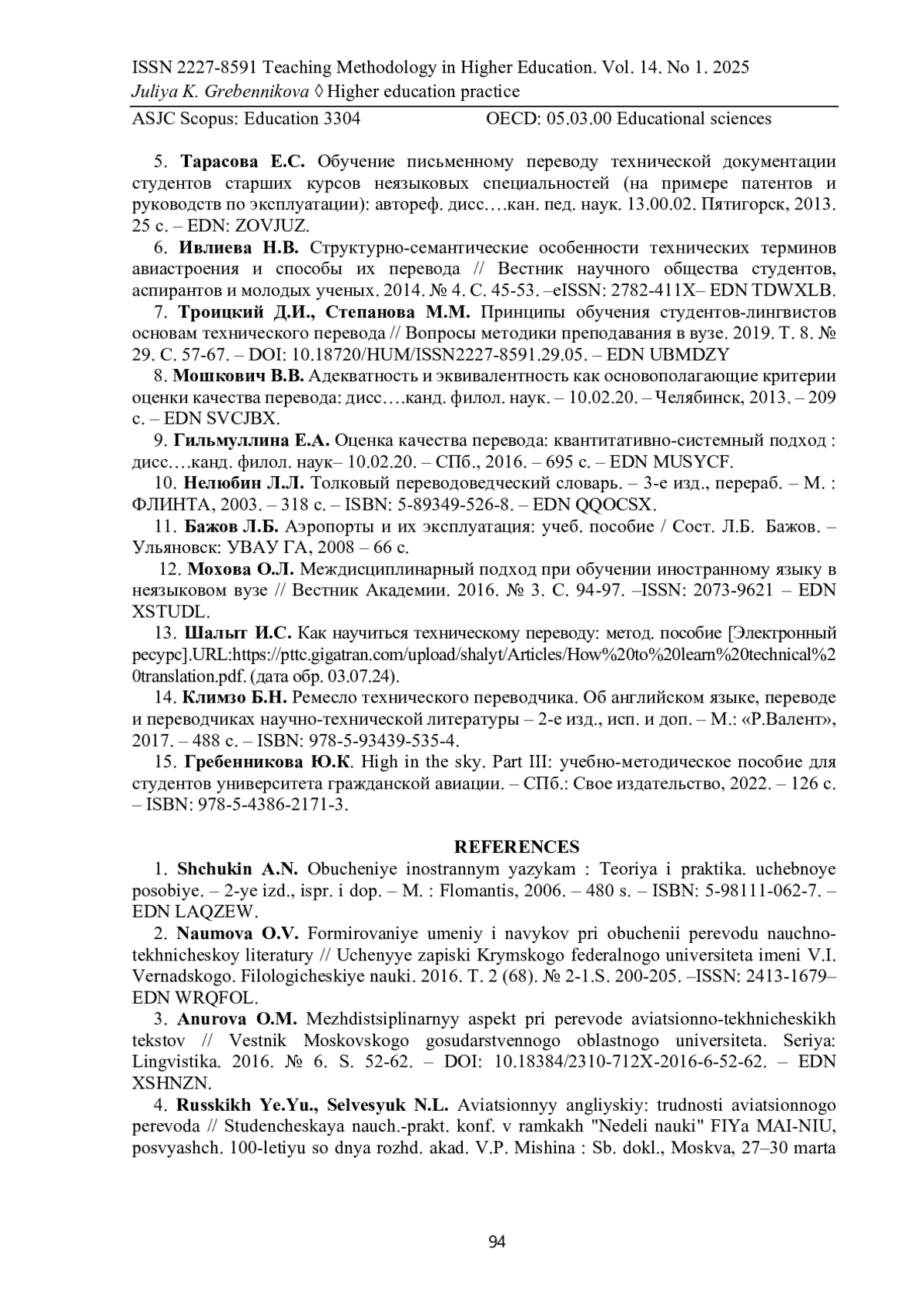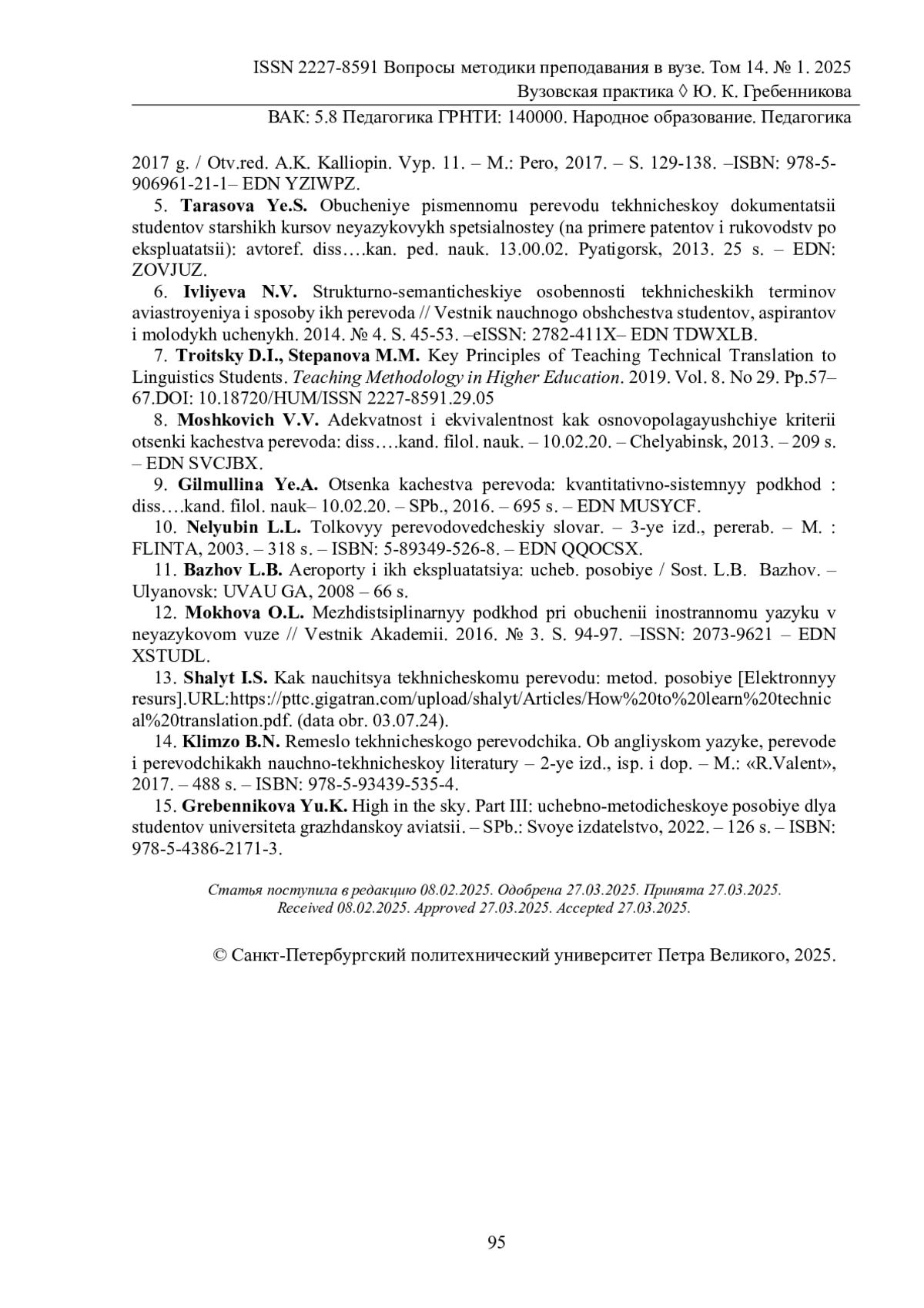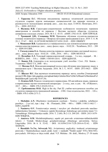 7. Троицкий Д.И., Степанова М.М. Принципы обучения студентов-лингвистов основам технического перевода // Вопросы методики преподавания в вузе. 2019. Т. 8. № 29. С. 57-67. - ISSN2227-8591.29.05. DOI: 10.18720/HUM/ EDN: UBMDZY