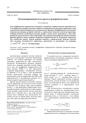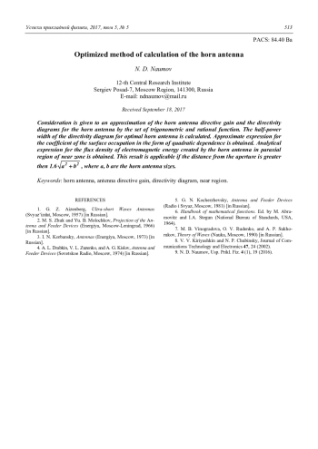 Наумов Н. Д. Оптимизированный метод расчета рупорной антенны 508