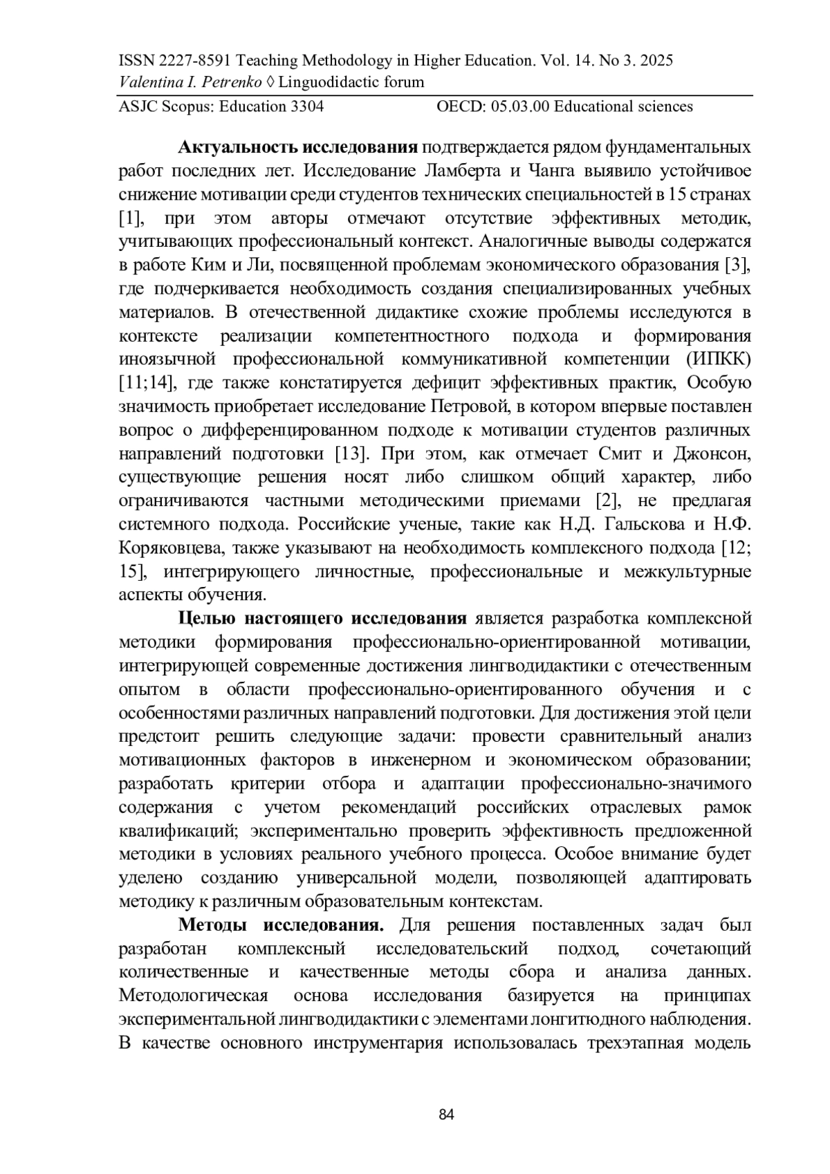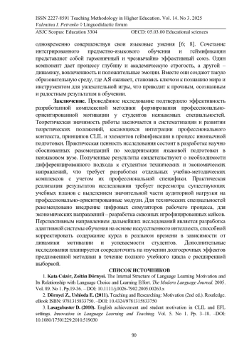 14. Зубков А.Д., Сыроквашин М.М. Профессионально-ориентированное обучение иностранному языку в вузе: сложности и перспективы // Мир педагогики и психологии: международный научно-практический журнал. 2025. - № 03 (104). - C. 50-57.