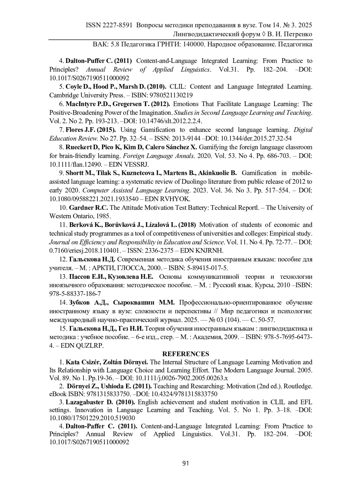 10. Gardner R.C. The Attitude Motivation Test Battery: Technical Reportl. - The University of Western Ontario, 1985.
