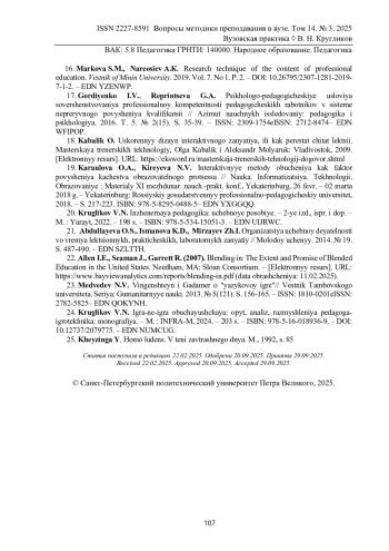 12. Асташова Т.А. Современная лекция в вузе глазами студентов и преподавателей // Образовательные технологии и общество. 2017. Т. 20. № 3. С. 299-308. -eISSN: 1436-4522. EDN: YUFATL