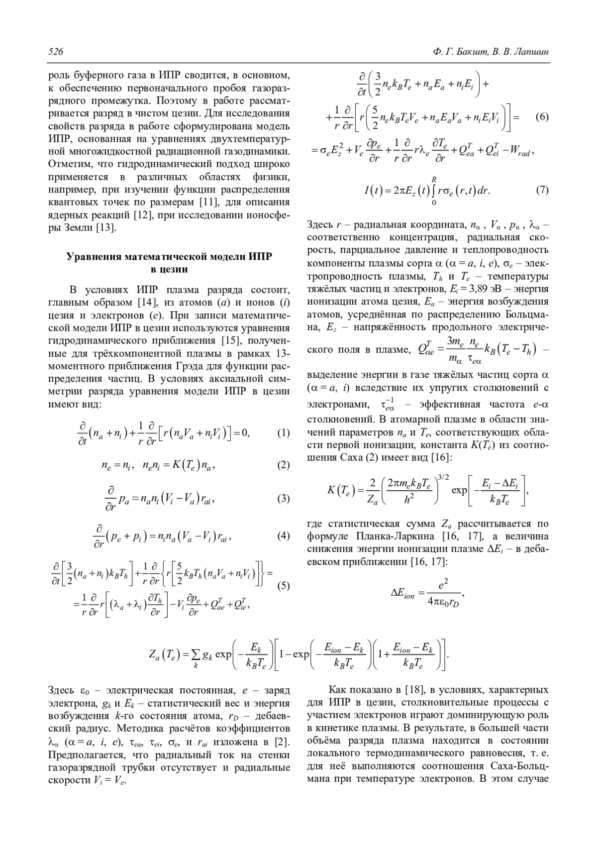 2. Baksht F. G., Lapshin V. F. // J. Phys. D: Appl. Phys. 2008. Vol. 41. P. 205201.