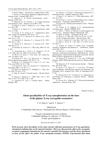 V. K. Egorov and E. V. Egorov About peculiarities of X-ray nanophotonics on the base of the planar X-ray waveguide-resonators 534