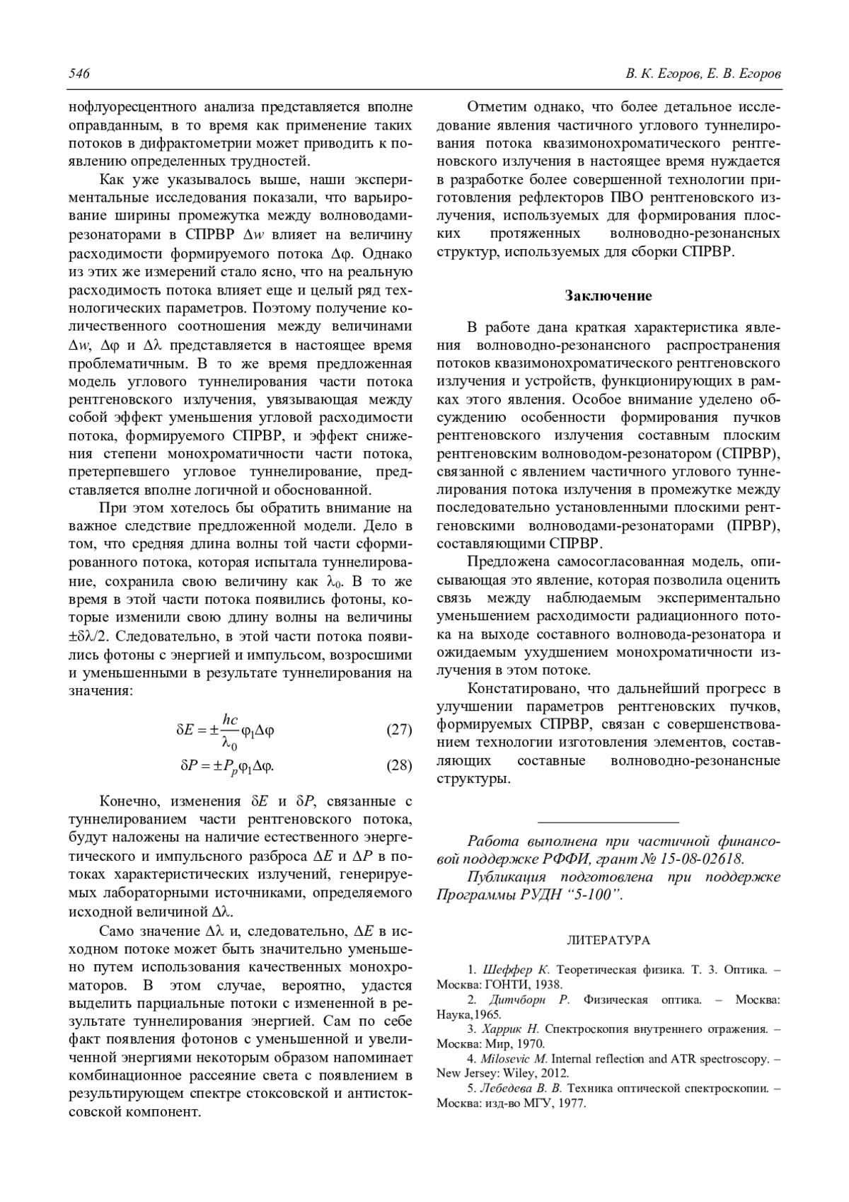 12. Егоров Е. В., Егоров В. К. // Поверхность (рент, синх., нейтр. исследования). 2005. № 2. С. 64