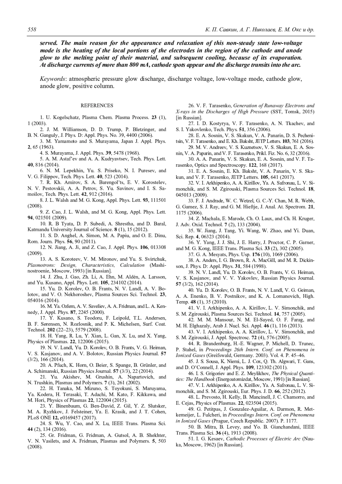 48. Prevosto L., Kelly H., Mancinell B., Chamorro J. C., Cejas E. // Physics of Plasmas. 2015. Vol. 22. P. 023504.