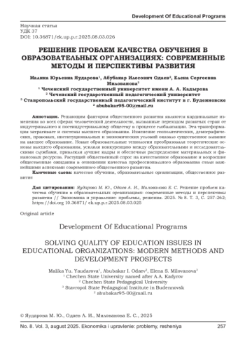 В условиях цифровизации и глобальной конкуренции образовательные организации сталкиваются с вызовами, связанными с обновлением содержания образования, внедрением инновационных педагогических технологий и повышением эффективности управления учебным процессом.