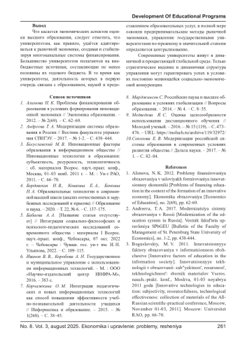 2. Андреева Т. А. Модернизация системы образования в России // Вестник факультета управления СПбГЭУ. - 2017. - № 1-2. - С. 438-444. EDN: ZBCMFJ