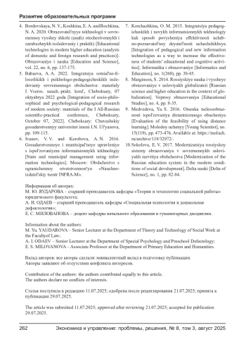 10. Соколова Е. В. Модернизация российской системы образования в современных условиях развития общества // Дельта науки. - 2017. - №1. - С. 82-84. EDN: YKVSKV