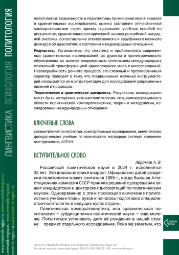 Теоретическая и практическая значимость. Результаты исследования могут быть интересны учёным-политологам, специализирующимся в области политической компаративистики, теории и методологии, исследовании международных отношений.