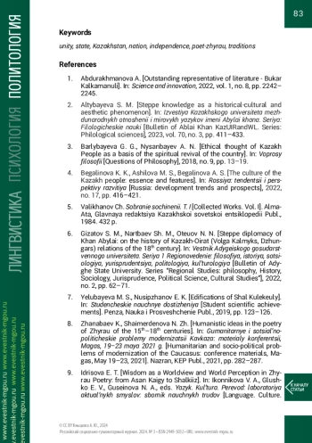 14. Спанов М. Ж., Малгараева З. Б. Творчество жырау и формирование национальной идеи // Адам әлемі. 2021. №1. С. 52-65.