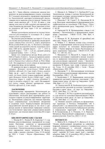 3. Пикалова Г. М., Серая Г. П., Пасынкова М. В. и др. Некоторые закономерности формирования культурфитоценозов на золоотвалах ТЭЦ Урала // Растения и промышленная среда. Свердловск, 1974. Сб. 3. С. 69-96.