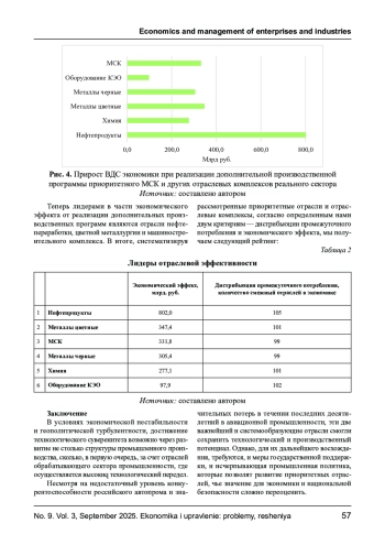 В условиях экономической нестабильности и геополитической турбулентности актуальность достижения технологического суверенитета продолжает расти. Его достижение достигается не только в рамках цифровизации, но также в рамках анализа возможностей развития традиционных отраслей реального сектора экономики. Более того, несмотря на сравнительную неконкурентоспособность российского автомобилестроения, а также множества сложностей связанный с развитием российского авиастроения, особенно в условиях ограничения доступа на рынки иностранных капитала и технологий, именно эти отрасли смогли сохранить производственный потенциал, реализации которого важно уделить самое пристальное внимание. Однако необходимо отметить и другие отрасли, которые, также как и машиностроение, в определенный момент должны становиться приоритетными для стимулирования и интенсификации их развития, что позволит актуализировать собственную конкурентоспособность. Для систематизации подхода в выборе приоритетных отраслей окажет поддержку оценка и анализ отраслевой эффективности, а также построение рейтинга отраслевой эффективности. Использование и актуализация такого инструмента позволит всем заинтересованным сторонам, бизнесу, смежникам и государству иметь исчерпывающую информацию о том, какие отрасли необходимо стимулировать в настоящее время, а также, к каким экономическим результатам это приведет.
