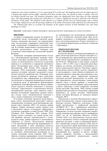 Полученные данные позволяют прогнозировать динамику объемно-пространственной структуры как отдельных деревьев, так и городских насаждений в целом.