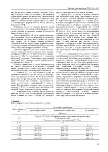 В статье представлены результаты оценки роста деревьев на объектах озеленения г. Красноярска. Объектами исследования являются деревья тополя бальзамического (Populus balsamifera L.) с естественной формой кроны, прошедшие только санитарную обрезку, произрастающие в городских посадках с различным уровнем техногенного воздействия; обследуемые территории относятся к объектам общего, ограниченного пользования и специального назначения районного значения, расположенные во всех районах города; на территории исследуемых объектов выявлено четыре типа композиционного расположения деревьев: солитер, массив, рядовая и букетная посадки. предельный возраст исследуемых деревьев составляет 80 лет. Рост по высоте достоверно описывается уравнением Мичерлиха. Анализ роста деревьев по высоте показал, что: до 15–18-летнего возраста условия среды не оказывают существенного влияния на рост данного вида в высоту, в дальнейшем начиная с 35–40-летнего возраста прослеживается дифференциация на несколько типов роста; к 70-летнему возрасту, амплитуда по высоте между растениями, произрастающими в удовлетворительных и критических условиях, составляет 13 м, что составляет 50 %; ряды роста по высоте для растений, произрастающих в букетном типе пространственной структуры, несколько отличаются от остальных типов: разброс значений меньше, выделяется только два типа по темпам роста, значения биометрических параметров значительно ниже аналогичных для других типов посадки, одинаковая площадь питания растений, приходящаяся на один и на несколько стволов (от 3-х до 7) деревьев играет важное значение и отражается на биометрических параметрах растений. Полученные результаты позволили составить ряды хода роста тополя бальзамического с естественной формой кроны с учетом условий произрастания в урбосреде промышленного города Красноярска.