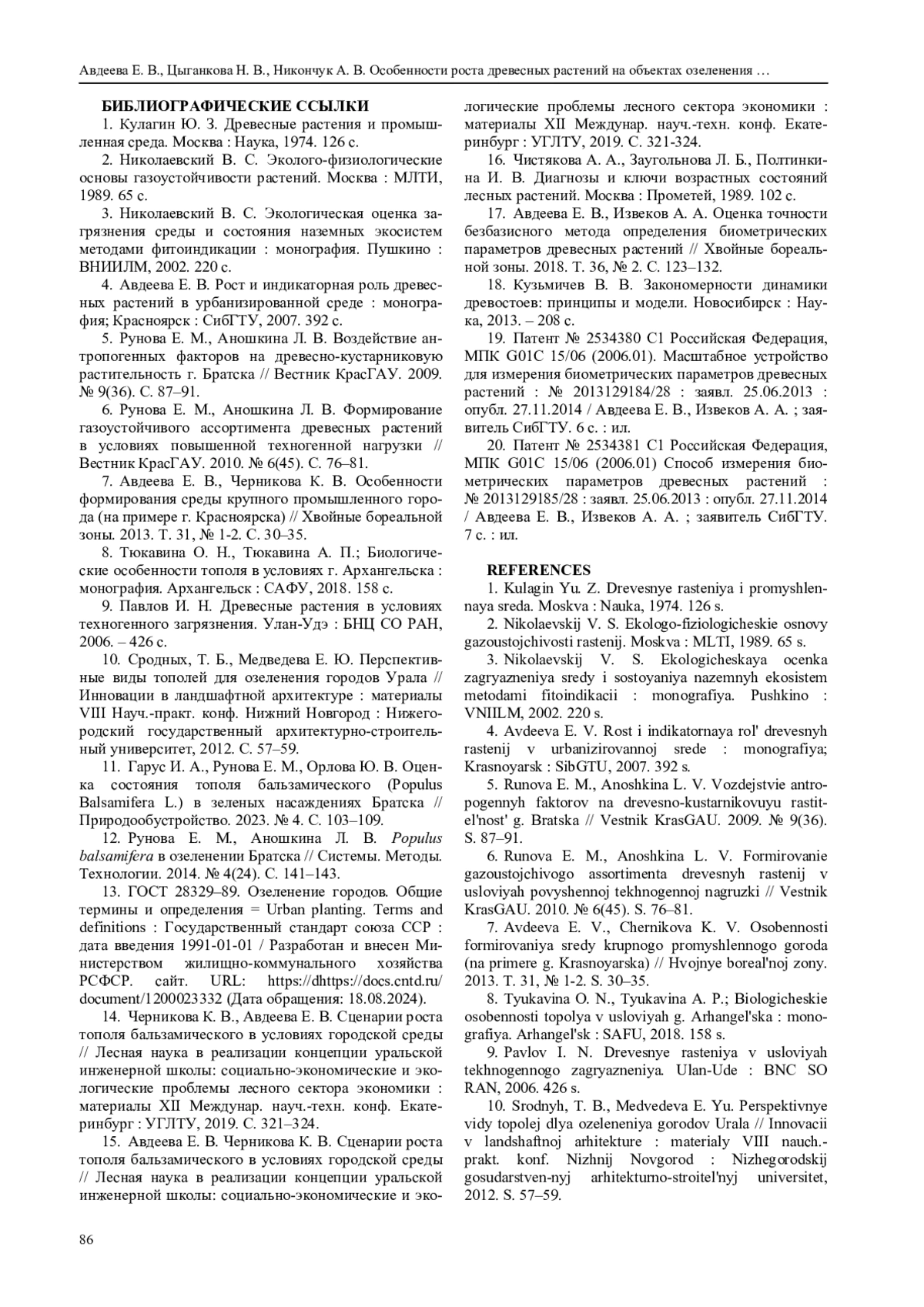 7. Авдеева Е. В., Черникова К. В. Особенности формирования среды крупного промышленного города (на примере г. Красноярска) // Хвойные бореальной зоны. 2013. Т. 31, № 1-2. С. 30-35.