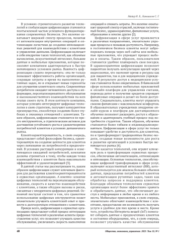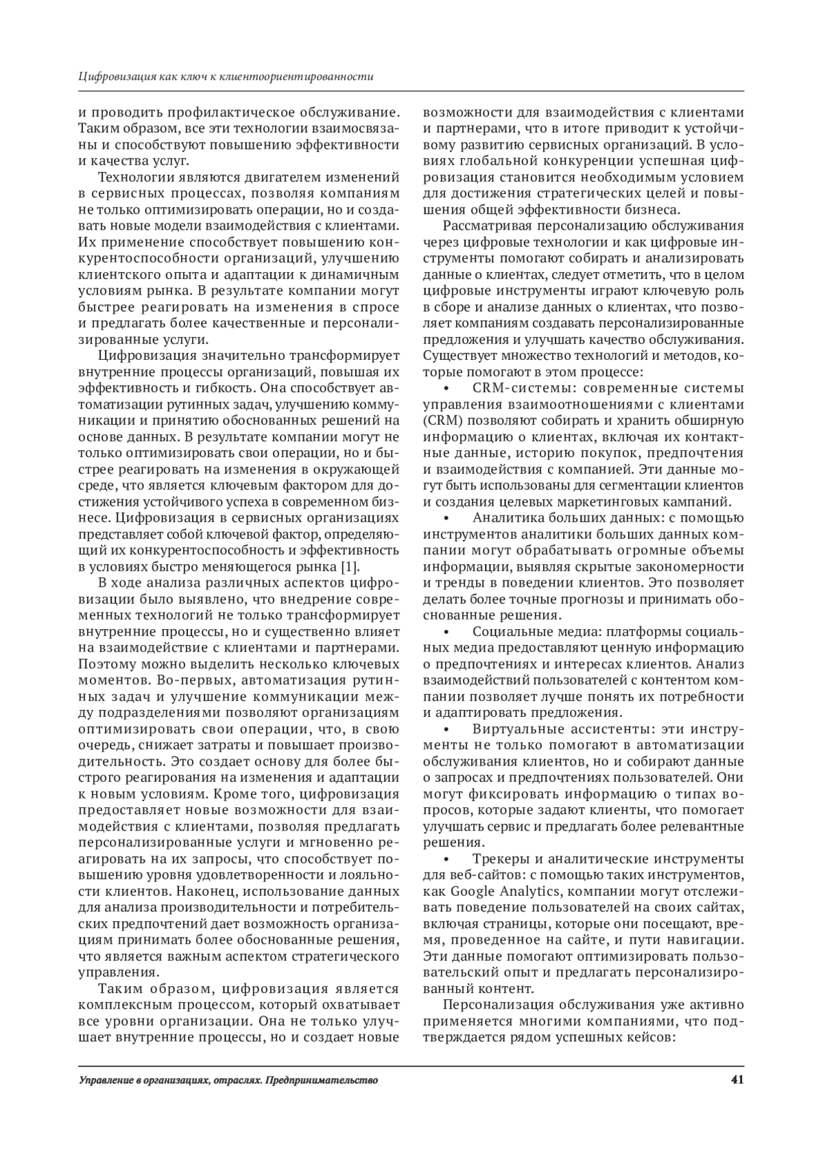 Основной тезис статьи заключается в том, что цифровизация в сервисных организациях значительно способствует клиентоориентированности персонала. Использование цифровых технологий позволяет обеспечить более персонализированный подход к каждому клиенту, повысить скорость и качество обслуживания, а также улучшить общий клиентский опыт.