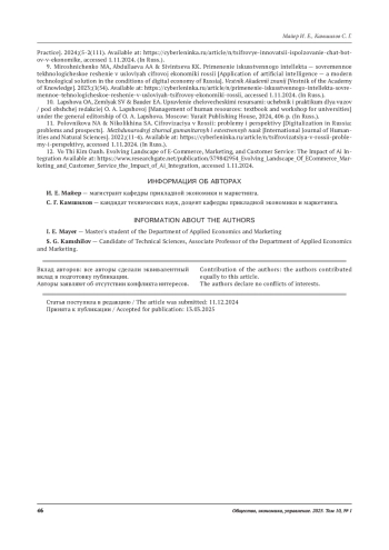 11. Vo Thi Kim Oanh. Evolving Landscape of E-Commerce, Marketing, and Customer Service: The Impact of Ai Int egration. URL: https://www.researchgate.net/publication/379842954_Evolving_Landscape_Of_ECommerce_Marketing_and_Customer_Service_the_Impact_of_Ai_Integration. (дата обращения 10.11.2024).