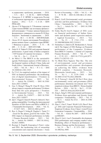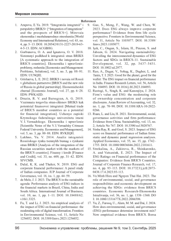 15. Strekalina A. Zakirova R. Shinkarenko A. Vatsaniuk E. The Impact of ESG Ratings on Financial performance of the Companies: Evidence from BRICS Countries // Journal of Corporate Finance Research. - 2023. - Vol. 17. - No 4. - P. 93-113. DOI: 10.17323/j.jcfr.2073-0438.17.4.2023.93-113