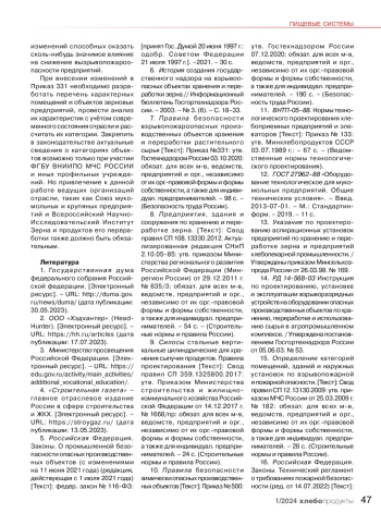 8. Предприятия, здания и сооружения по хранению и пере работке зерна. [Текст]: Свод правил СП 108.13330.2012. Актуа -лизированная редакция СНиП 2.10.05-85: утв. приказом Мини -стерства регионального развития Российской Федерации (Мин регион России) от 29.12.2011 г. № 635/3: обязат. для всех м- в, ведомств, предприятий и орг., независимо от их орг. правовой формы и формы собственности, а также для индивидуал. предпри -нимателей. - 54 с. - (Строительные нормы и правила России).
