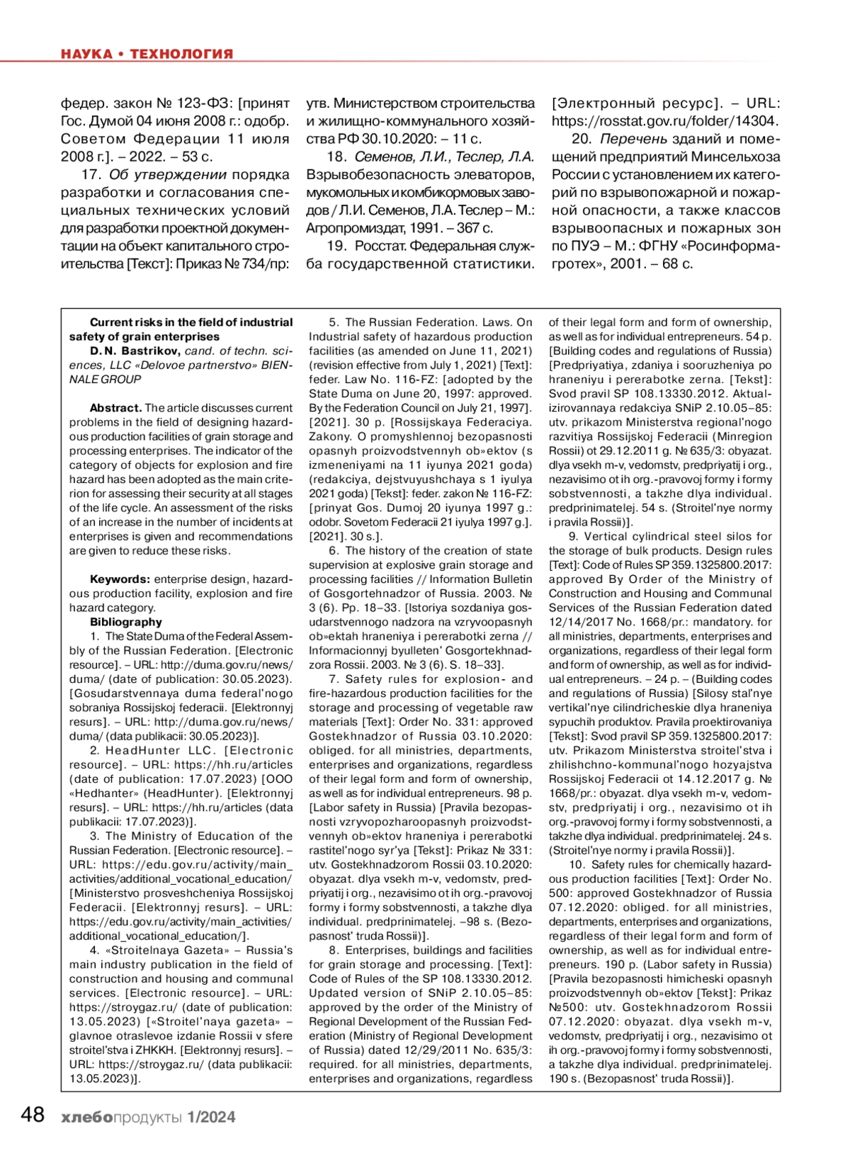 18. Semenov L.I., Tesler L.A. Explosion safety of elevators, flour mills and feed mills / Semenov L.I., Tesler L.A. - M.: Agropromizdat, 1991. 367 p. [Vzryvobezopasnost’ elevatorov, mukomol’nyh i kombikormovyh zavodov. - M.: Agropromizdat, 1991. - 367 s.].