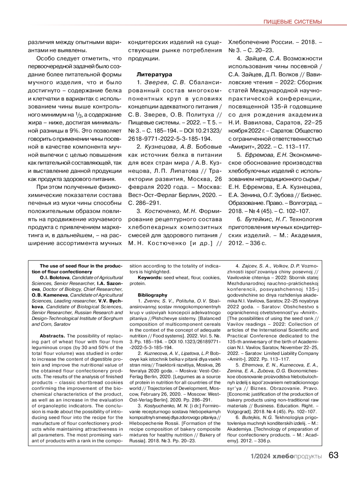 1. Зверев, С. В. Сбалансированный состав многоком понентных круп в условиях концепции адекватного питания / С. В. Зверев, О. В. Политуха // Пищевые системы. - 2022. - Т. 5. -№ 3. - С. 185-194. 10.21323/ 2618- 9771 - 2022 -5- 3-185-194. DOI: 10.21323/2618-9771-2022-5-3-185-194