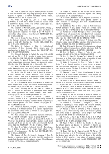 145. Fontao L, Favre B, Riou S, Geerts D, Jaunin F, Saurat JH, et al. Interaction of the bullous pemphigoid antigen 1 (BP230) and desmoplakin with intermediate filaments is mediated by distinct sequences within their COOH terminus. Mol Biol Cell. 2003;14(5):1978-1992. DOI: 10.1091/mbc.e02-08-0548