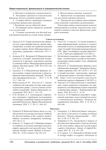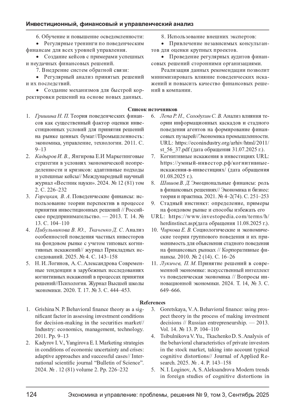 4. Цибульникова В. Ю., Ткаченко Д. С. Анализ особенностей поведения частных инвесторов на фондовом рынке с учетом типовых когнитивных искажений// журнал Прикладных исследований. 2025. № 4. С. 143-158. EDN: QIWGCX