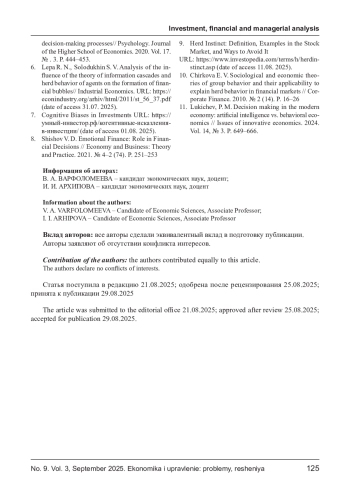 7. Когнитивные искажения в инвестициях URL: https://wwwый- инвестор.рф/когнитивные- искажения-в-инвестициях/(дата обращения 01.08.2025 г.).