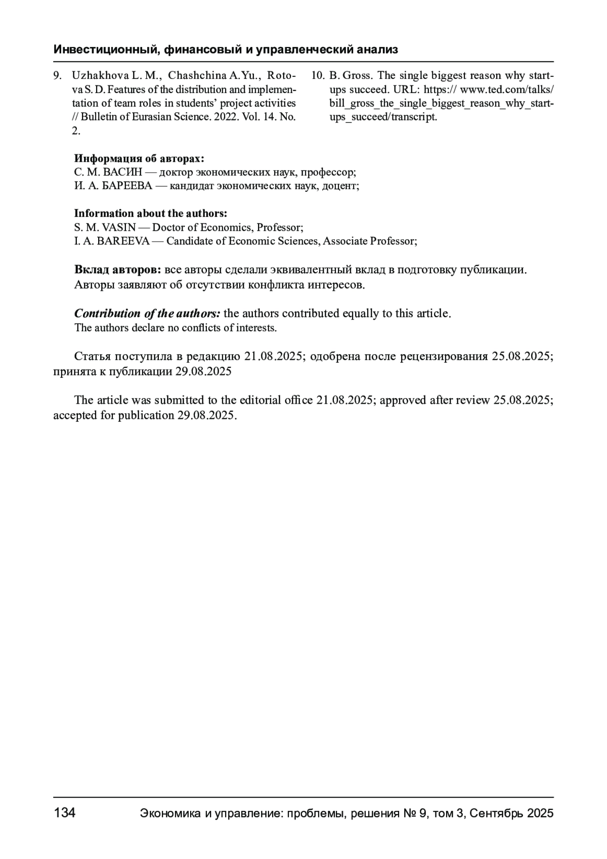 9. Ужахова Л. М., Чащина А. Ю., Ротова С. Д. Особенности распределения и реализации командных ролей в проектной деятельности студентов // Вестник евразийской науки. 2022. Т. 14. № 2. EDN: AOHQXB