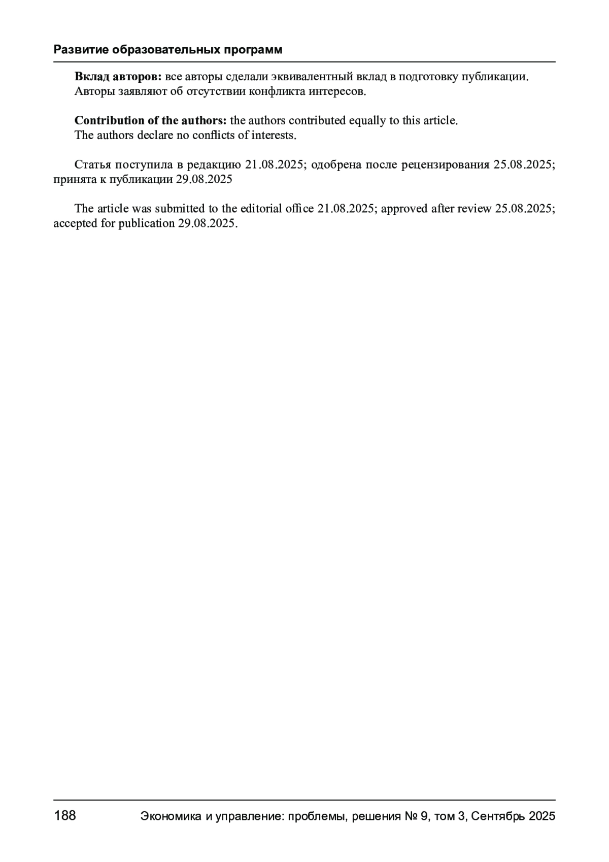 1. Алексеева Н. С. Управление устойчивым развитием интеллектуального капитала промышленной экосистемы в условиях новой реальности // Стратегическое управление устойчивым развитием экономики в новой реальности. СПб.: ПОЛИТЕХ-ПРЕСС, 2022. С. 381-403. EDN: ZCNBJW