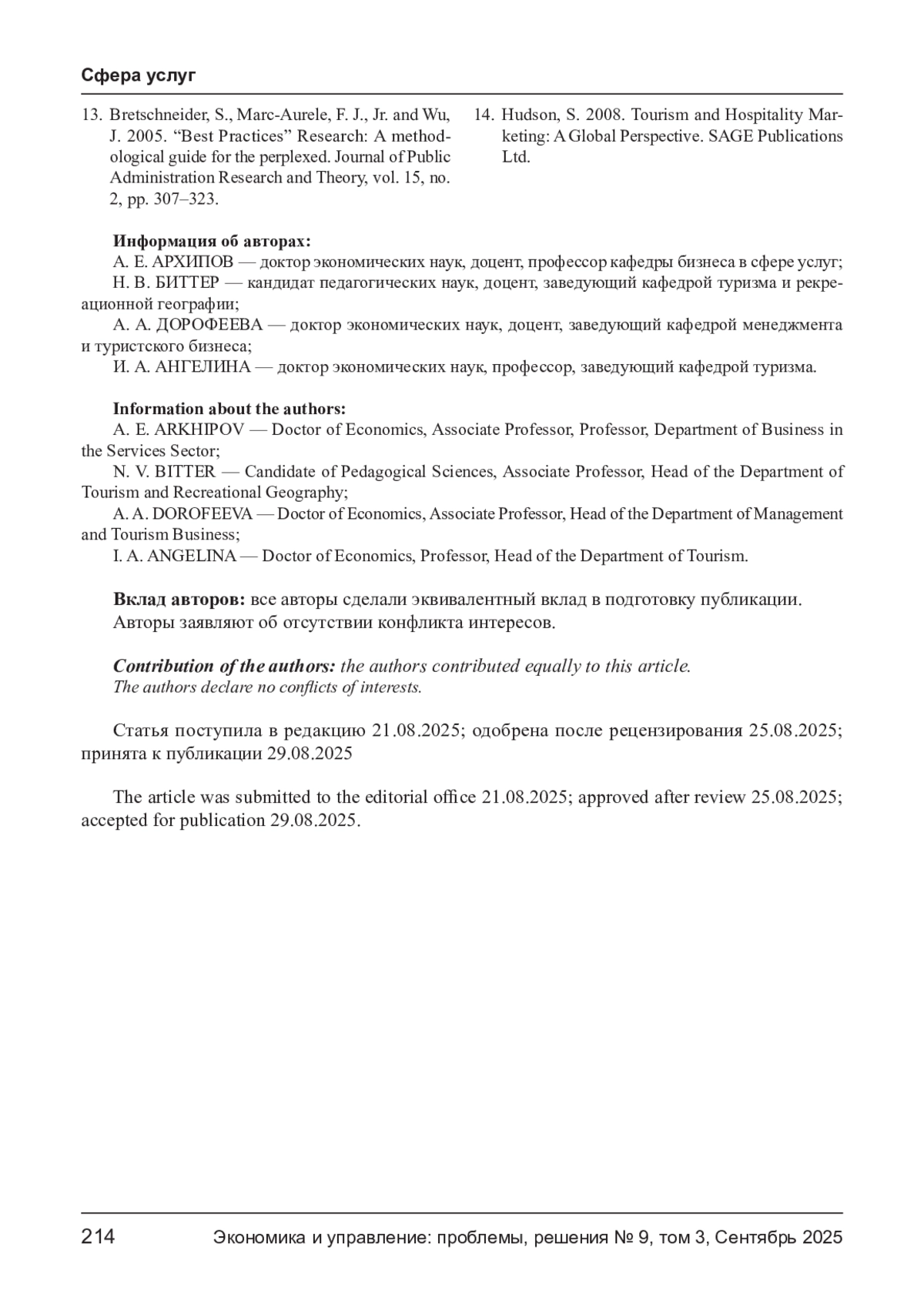 10. Архипов А. Е., Севрюков И. Ю. Меры государственной поддержки туристской отрасли: региональный экономический аспект // Проблемы современной экономики. - 2025. - № 2 (94). - С. 181-186.