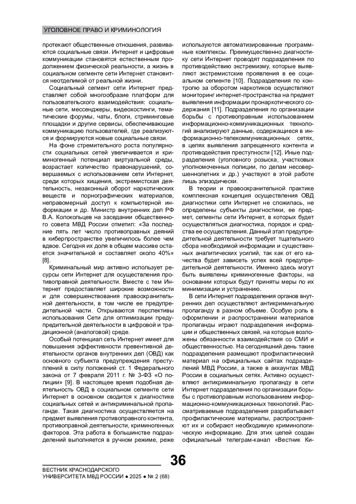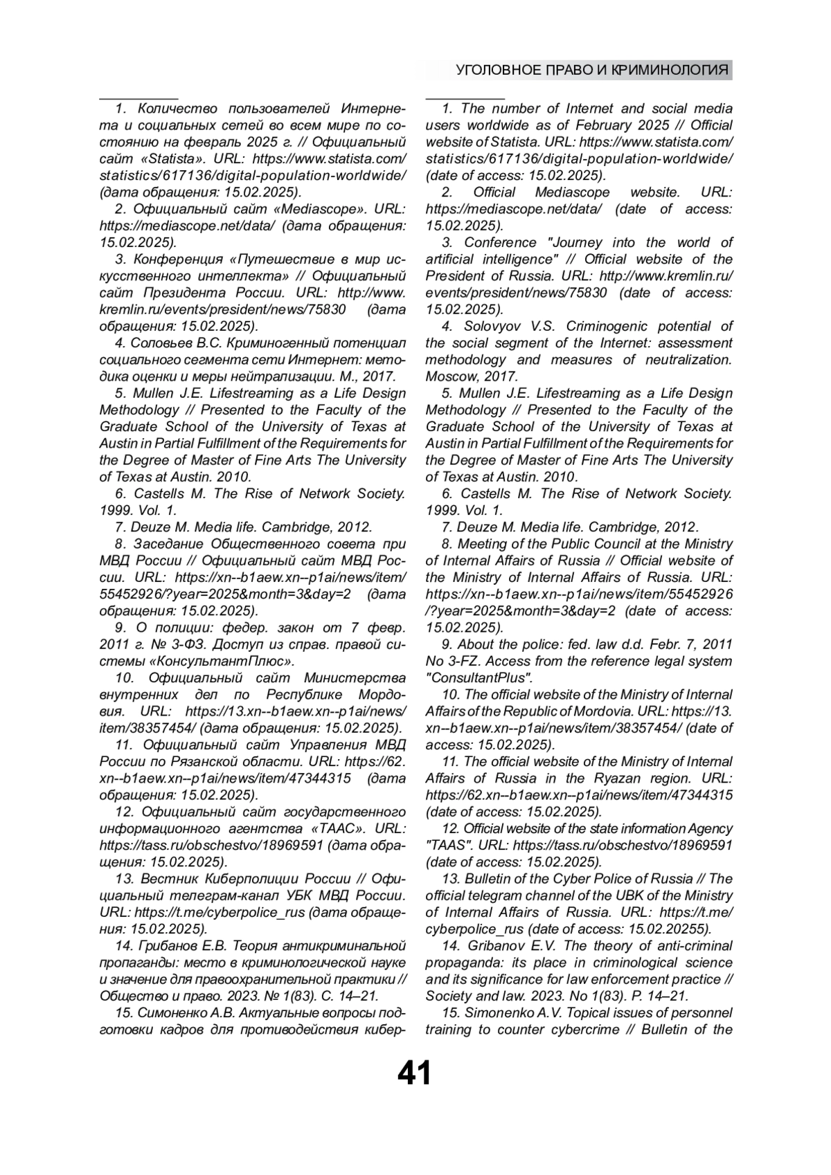 4. Соловьев В.С. Криминогенный потенциал социального сегмента сети Интернет: методика оценки и меры нейтрализации. М., 2017. EDN: XSDPWN